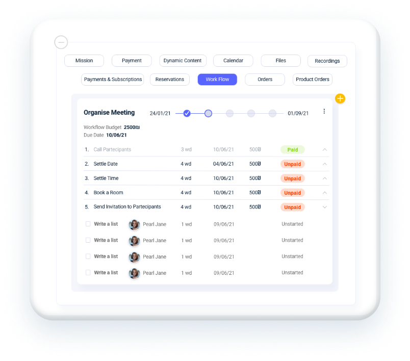 באמצעות המערכת תוכל לנהל מעקב חי אחר כל פרויקט. משלב החתימה הדיגיטלית, דרך כל ההתקשרות מול הלקוח מצד המשרד, קבלת תשלומים, שליחת הודעות, משימות, מסמכים וכו'- הכל מתאפשר ישירות מתוך המערכת שלנו. המערכת היא בהתאמה אישית, כך שניתן בקלות ובמהירות להציג נתונים מלאים לגבי הלקוחות בכל אופן בו תבחר.